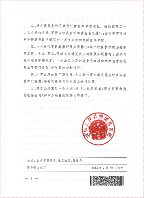 ★商务部关于举办2014中国健博会暨世界健康产业大会的批复